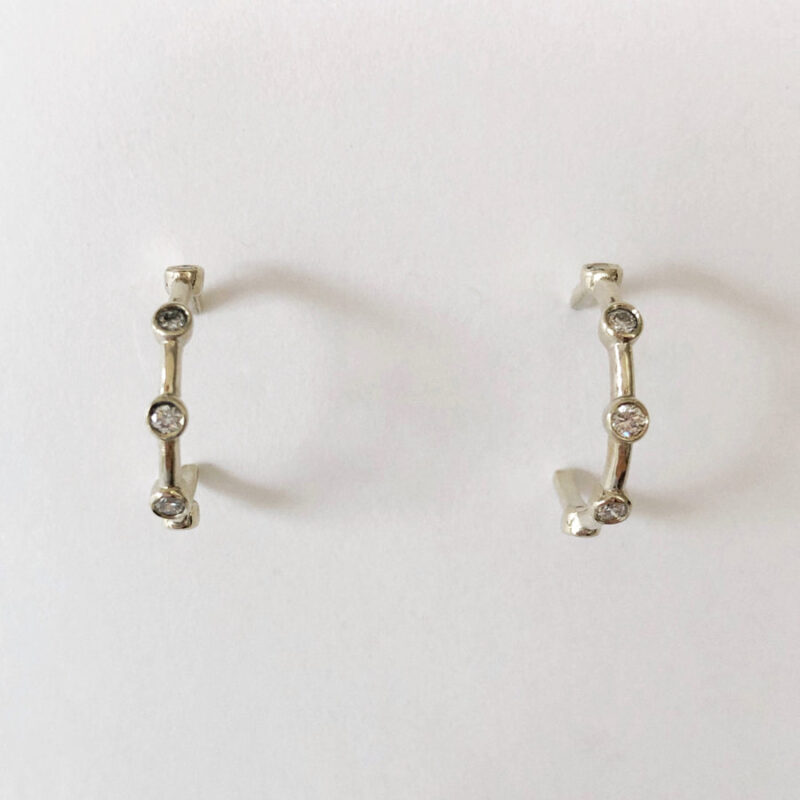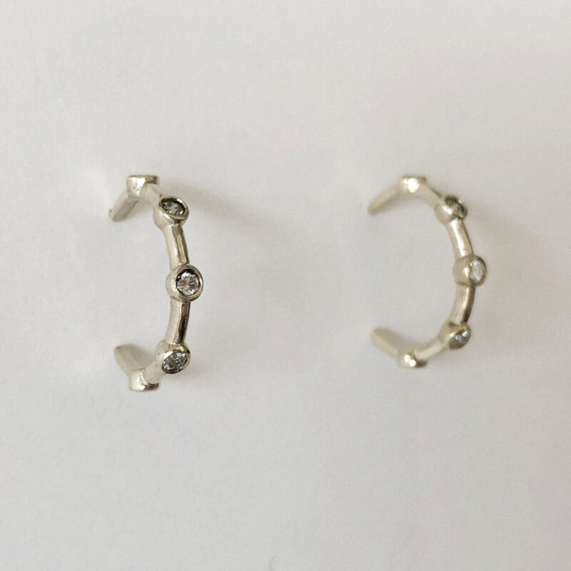 The Diamond Hops are a classic set of small hoop earrings set with a row of five sparkling conflict free FGSI diamonds in each. Available in 9ct white gold, the Diamond Hoops perfect for wearing every day, or to add just a little bit of sparkle to your look!