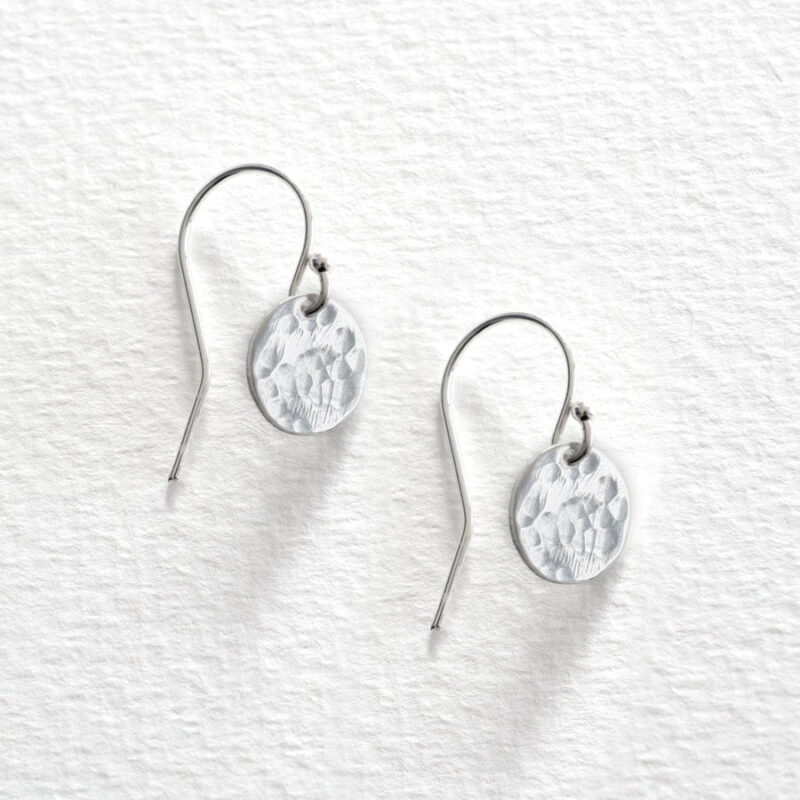 Hand made in our Melbourne studio – these pieces are simple, elegant and just so easy to wear. Each piece has been hammered, polished and assembled in house. Discs are a made from a lovely quality sterling silver.