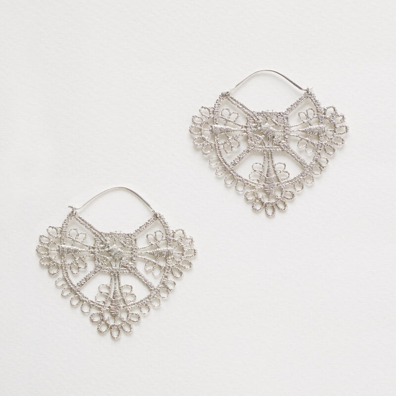 Evolving from a piece of lace, these earrings are intricate and beautifully detailed. Each piece has been cast in sterling silver and assembled in our Melbourne studio.