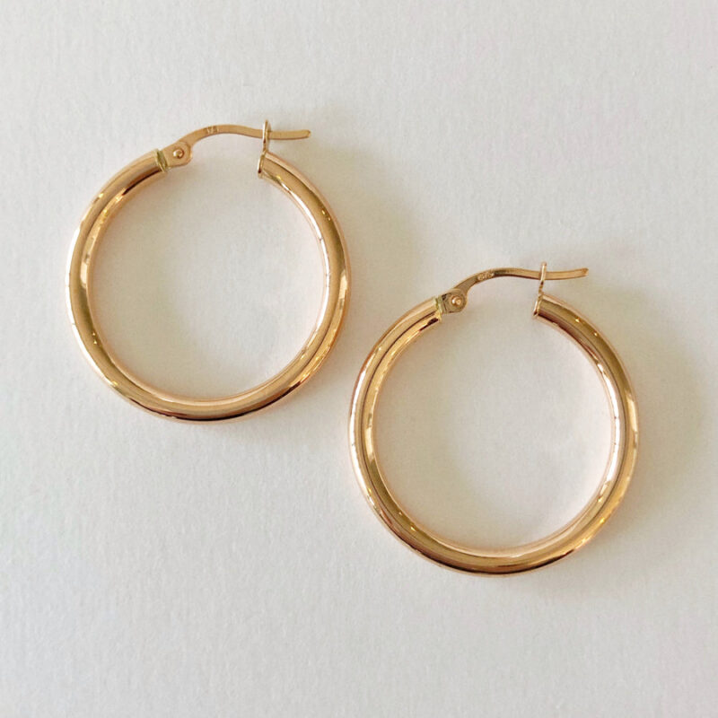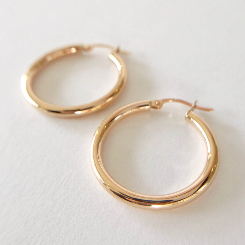 The kind of hoops that should be in every jewellery box. These simple, classic hoops are made from 9ct yellow or rose goldĀ and will last you a lifetime. Available in two sizes.