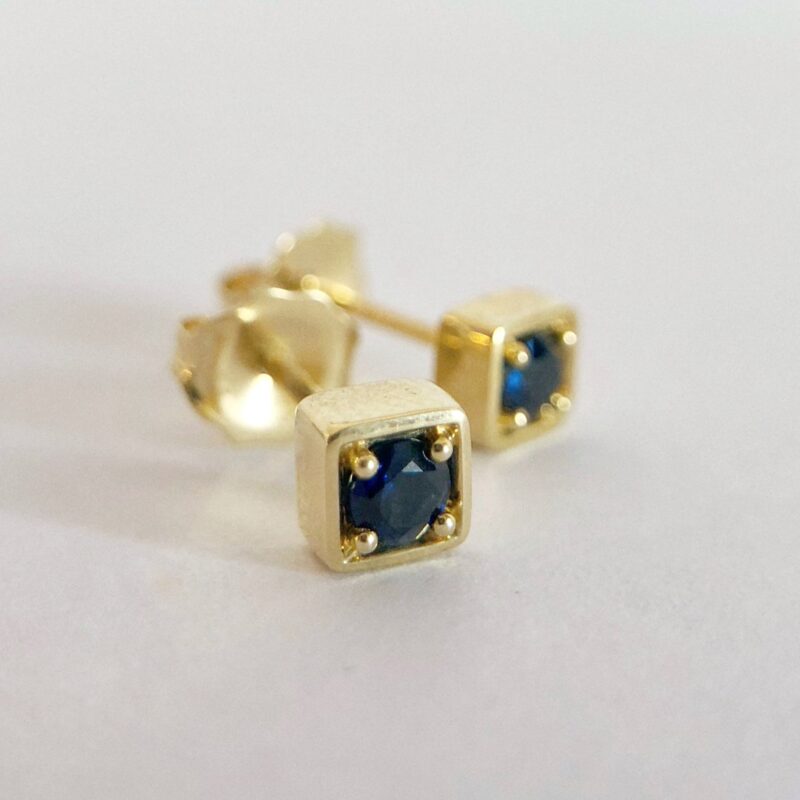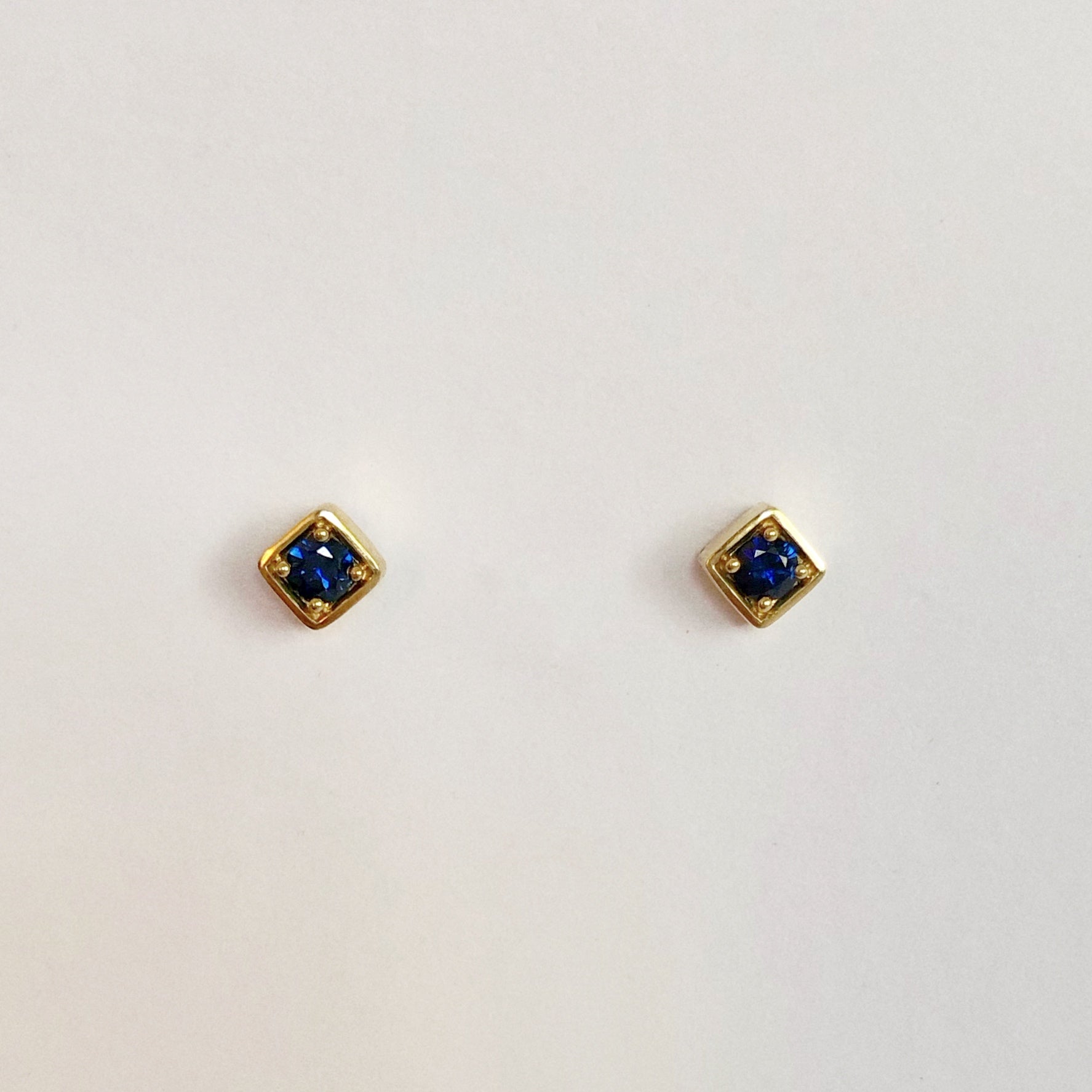 The perfect pair of petite stud earrings featuring Australian sapphires claw set in a square face. Available in 9ct yellow gold.