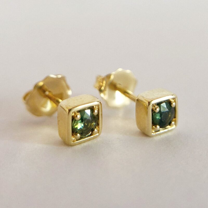 The perfect pair of petite stud earrings featuring Australian sapphires claw set in a square face. Available in 9ct yellow gold.