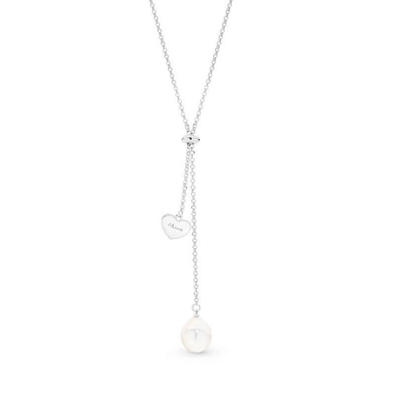 Introducing our exquisite pearl lariat necklace, a timeless and sentimental piece that beautifully captures the essence of motherhood. This elegant lariat necklace features a prominent drop pearl gracing one end, while the opposite end boasts a cubic zirconia charm engraved with the endearing word ‘mum,’ making it a heartfelt and stylish accessory.