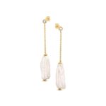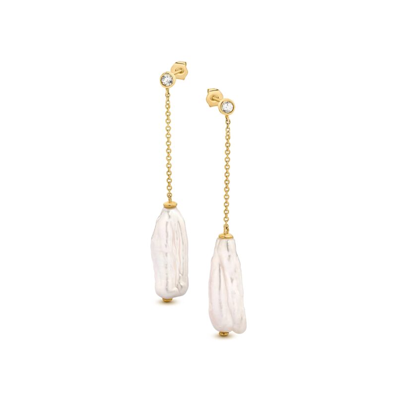 Introducing the Louisa Earrings: an exquisite fusion of style and elegance. Crafted with 9ct gold studs and adorned with a white topaz on the stud, each earring features a delicate chain that culminates in a suspended white baroque freshwater pearl, creating a chic and sophisticated statement. Combine with the Louisa Lariat to create a stunning ensemble.