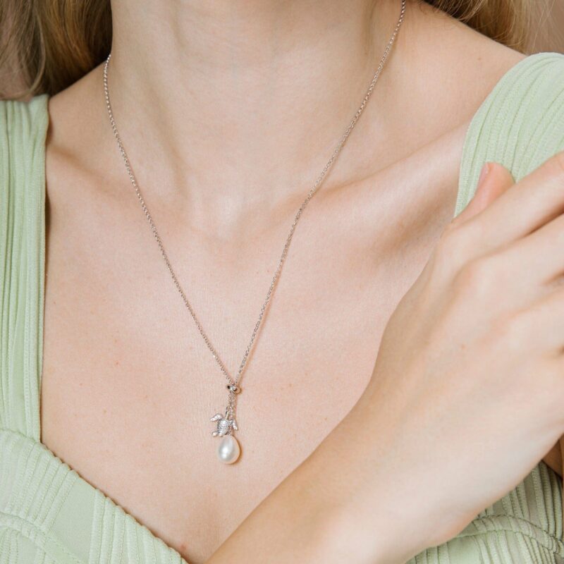 Introducing our exquisite pearl lariat necklace with turtle charm pendant – a captivating fusion of timeless elegance and the whimsical allure of the sea. This extraordinary piece of jewellery is designed to transport you to the tranquil shores of paradise and capture the essence of nature’s beauty.