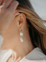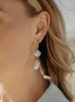 Our Kyah Earrings are a stunning statement pair. If you’re looking for an accessory that will showcase your bold, yet elegant personality, then these are the earrings for you. Two natural freshwater baroque pearls have been secured onto a solid 14K gold filled clasp hoop. We make sure to wrap the wire around our fastenings to keep the pearl safe and sound.