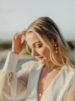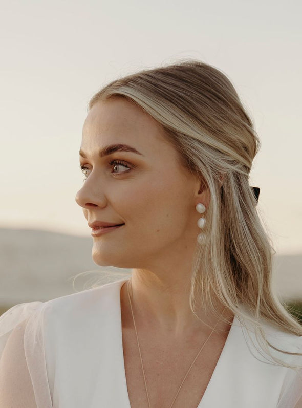 Our Rosalie Earrings exude modern romance. A freshwater pearl stud adorned with two medium drop pearls, available in 14K gold filled. We adore the Giselle Earrings for a bride on her special day, or for those simply looking to dress up an outfit.