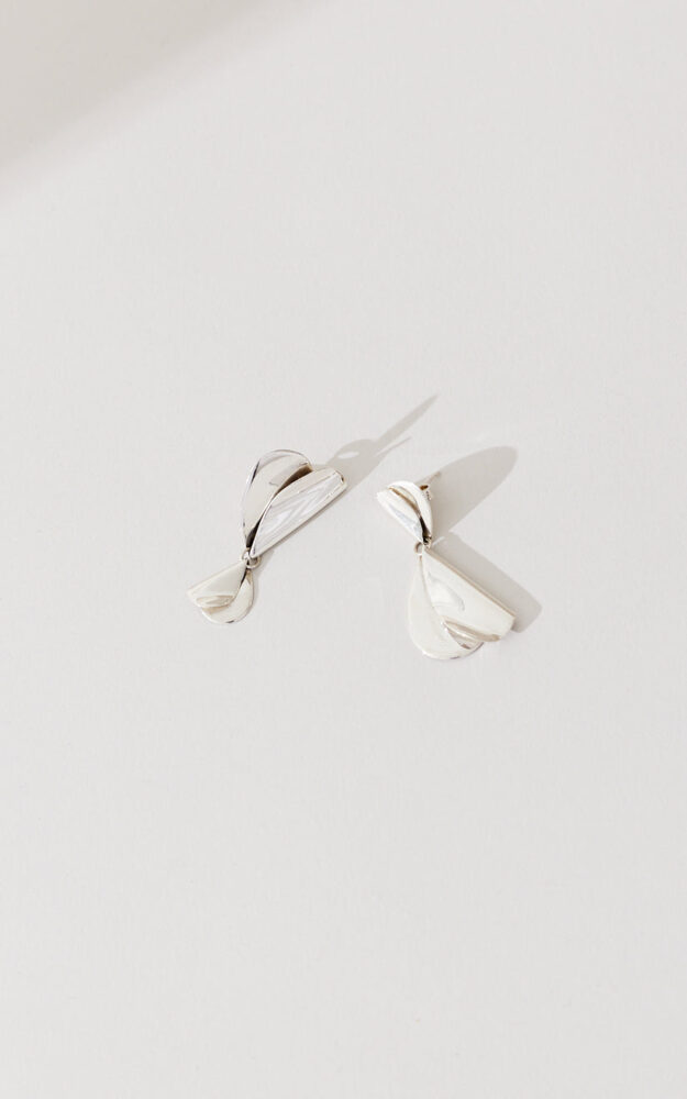 Elegant asymmetry drop earrings add movement and sculptural silhouette to your outfit. With a left and a right earring. Each piece is handmade.