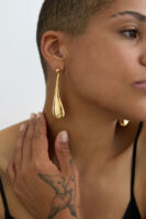 Elevate your look with these exquisite long hollow-form earrings, where modern elegance meets sustainable craftsmanship. Designed with a graceful teardrop silhouette, they bring effortless sophistication this set includes both a left and right earring.