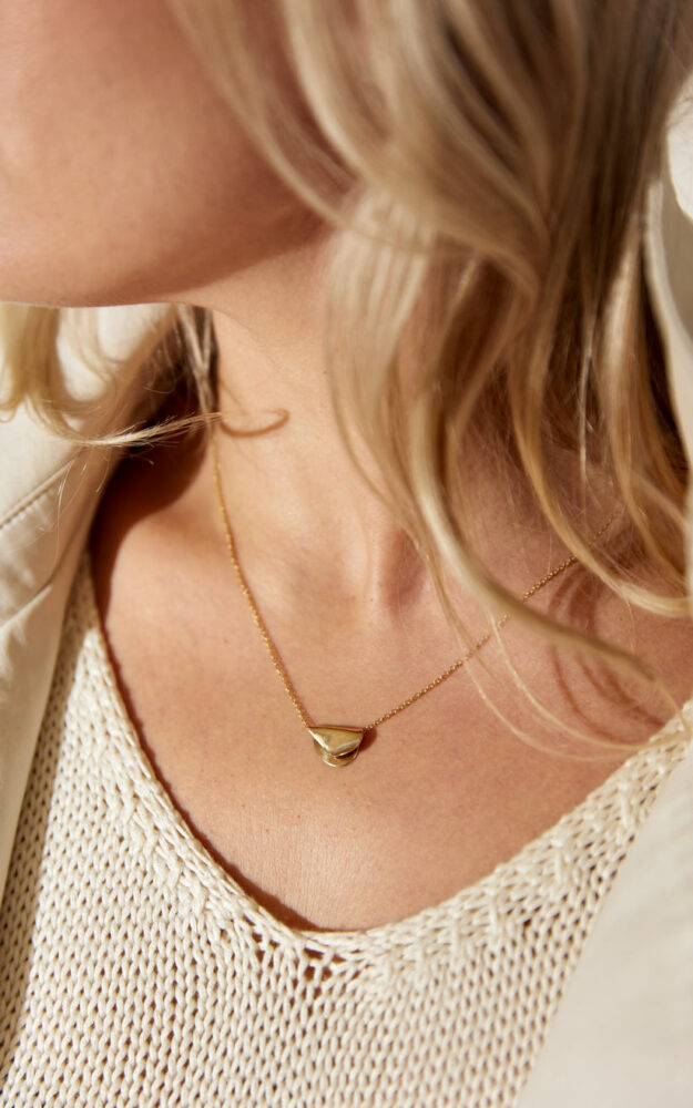 A timeless symbol of love, a statement on its own or layer it with other pieces. Modernist style folded to create a unique sculptural pendant. Chain can be shortened with 2 extra loops. All pieces are lovingly handmade.