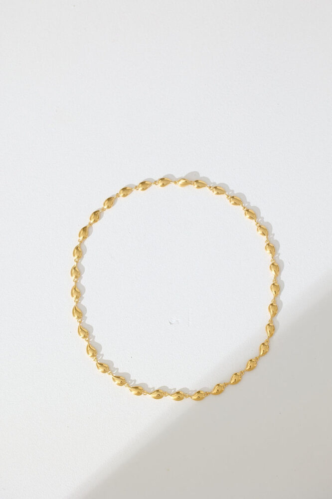 Solid Tear Drop Chain Necklace, a captivating piece that redefines contemporary elegance. This necklace features a series of individual small solid tear drops meticulously linked together, creating a fluid and dynamic design.