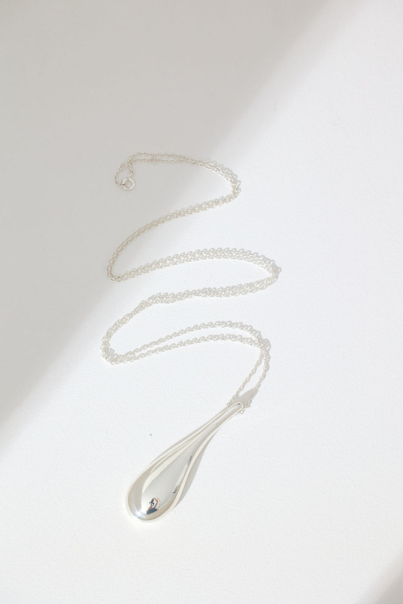 The long large hollow form pendant is a breathtaking centerpiece that showcases the perfect balance between modernist design and dramatic impact. This pendant embodies the essence of elegance and contemporary sophistication with its smooth tear drop shape and strikingly long length.