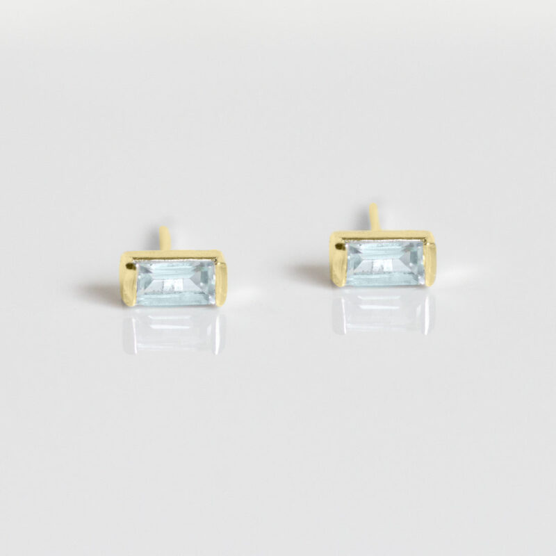 Featuring natural topaz in the lightest shade of blue, these studs offer a subtle yet impactful pop of colour to your ear.