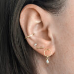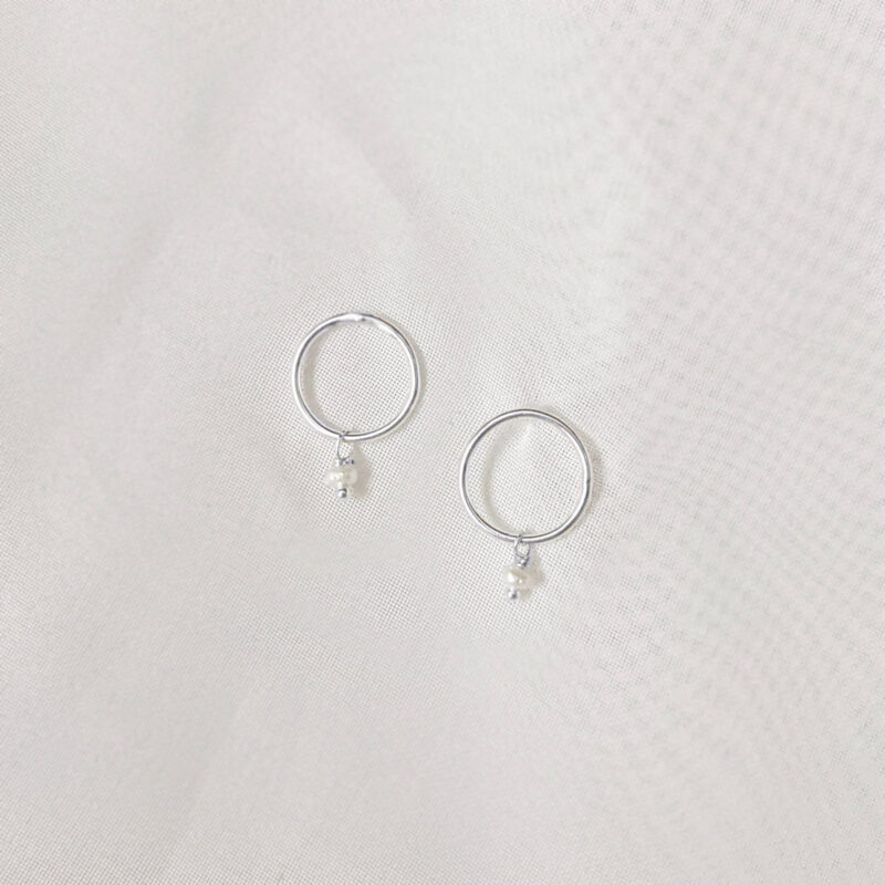 A fine circle stud adorning a single freshwater pearl on each earring. These earrings are lightweight with a lovely little bit of movement.