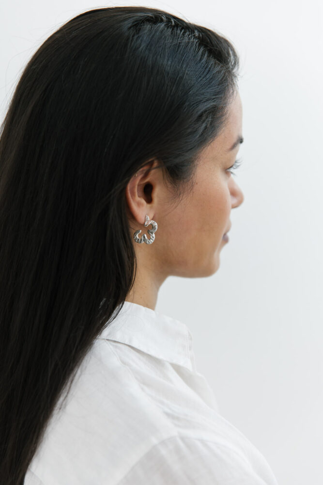 Add a touch of floral to your day with these silver flower power earrings. They have a unique texture which catches the light and are beautifully weighed, solid but light weight so you can wear them every day. I’d describe this style as sophisticated but fun!