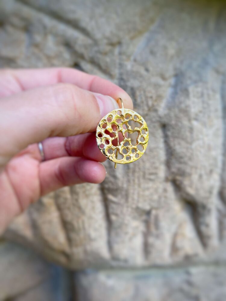 These sea erosion earrings are inspired by the patterns on rocks I’ve noticed around the Sydney coast. Made in sterling silver and gold plated, they’re perfect for any occasion and make an ideal gift.