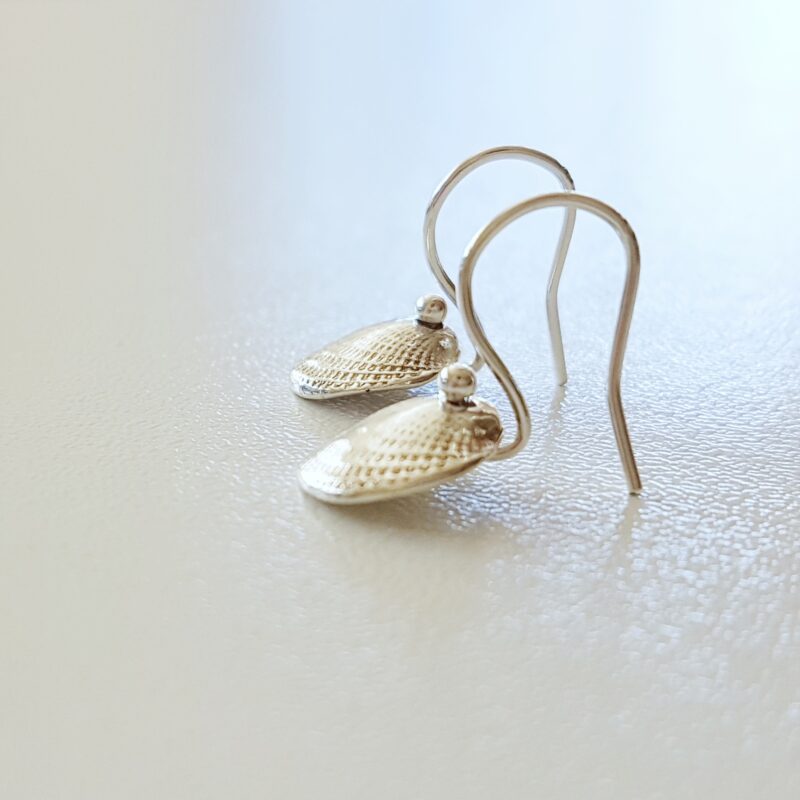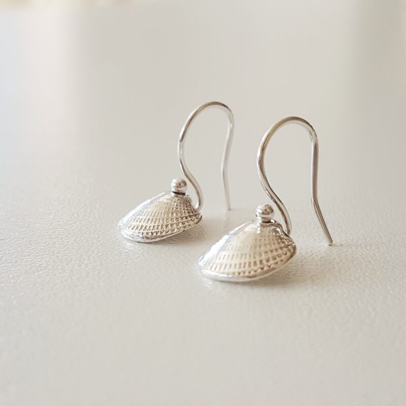 These silver shell earrings make a popular gift. They are made from fine silver and float from sterling silver hooks. Moulded from shells found on Kaiteriteri beach in NZ (one of my favourite spots), they are delicate and lightweight.