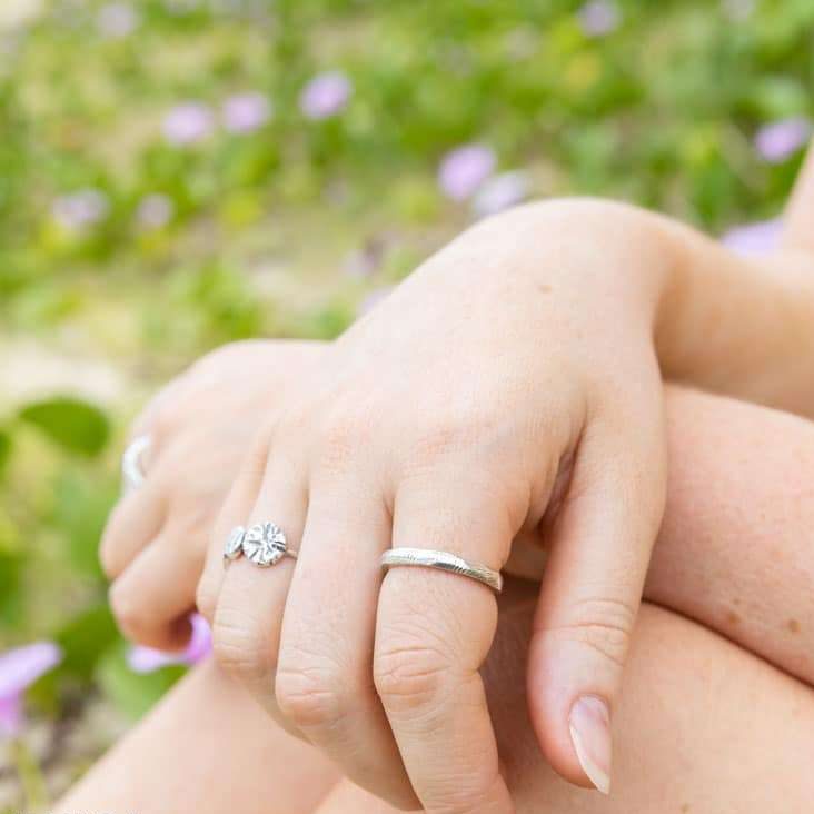 Boasting a unique, oxidised finish, each Beach Stacker Ring is individually handcrafted to ensure no two pieces are alike. This distinctive feature allows you to express your personal style with confidence and elegance. Designed to be worn in various combinations, these rings empower you to create a look that is uniquely yours, enhancing any beach or ocean-themed outfit.