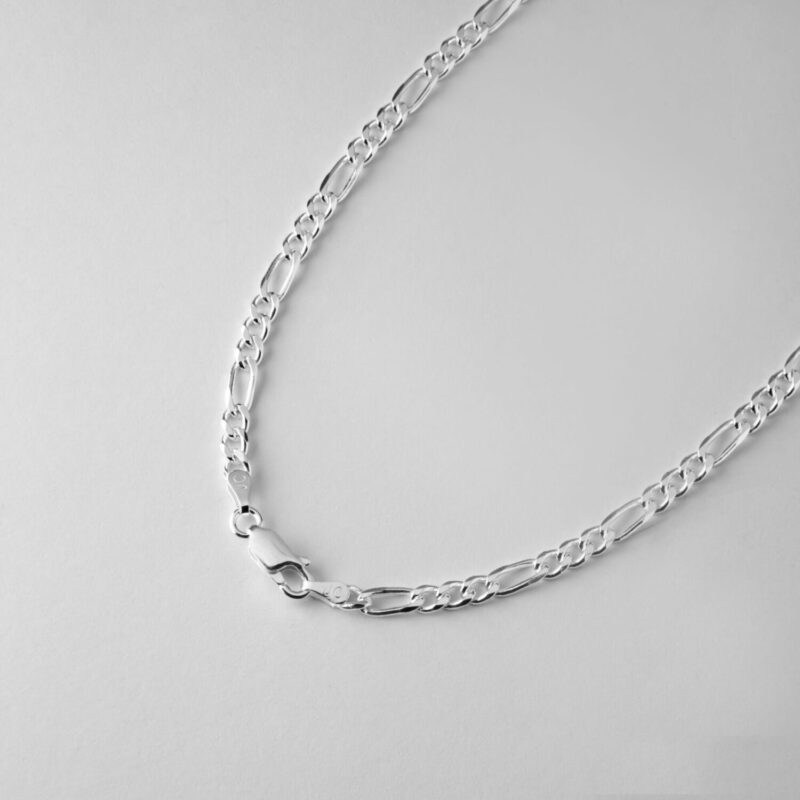 The Silver Figaro Chain, now in a thicker gauge, is a bold and luxurious accessory that embodies timeless elegance. Handcrafted from high-quality silver, this striking chain features the iconic Figaro pattern of alternating short and elongated links, with a more substantial feel for added impact. The thicker design creates a bolder visual effect while maintaining the classic sophistication of the Figaro style.