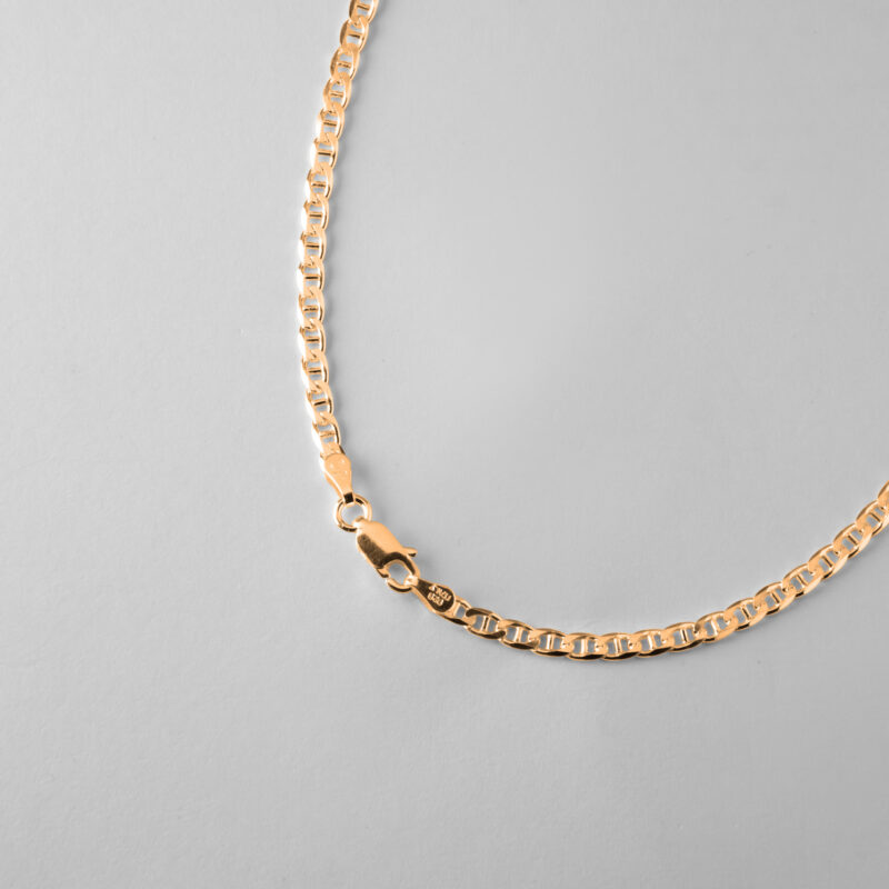 Introducing the Gold Anchor Chain, designed for those who want a bold yet refined statement piece. This chain offers a thickness that sits comfortably between our lighter and thicker options, delivering a perfect balance of presence and elegance. The classic anchor-inspired design features flat, interlocking links that create a sturdy, sophisticated look that complements a variety of styles.