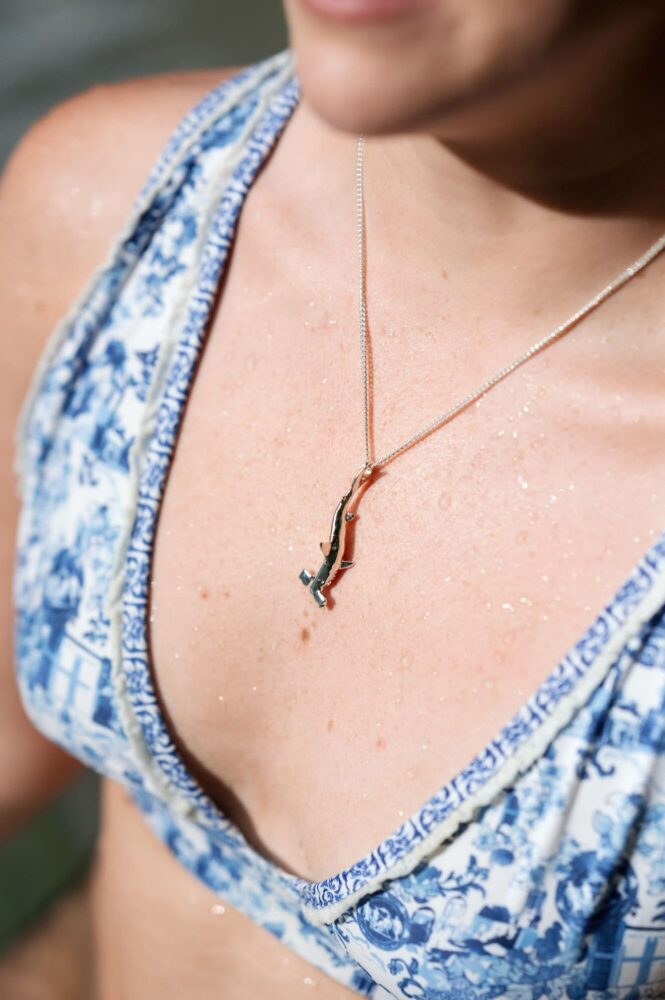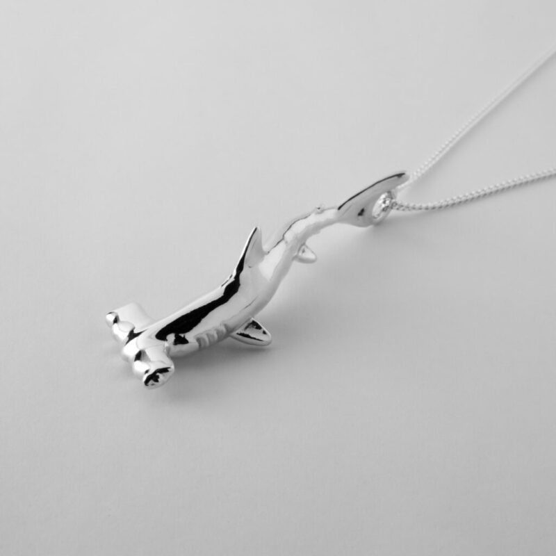 For those who truly admire the beauty of the ocean, our larger hammerhead shark pendant is a stunning homage to this incredible marine creature. Available in solid sterling silver or solid gold, this piece boasts a high-polished finish that highlights its striking design and lifelike details.
