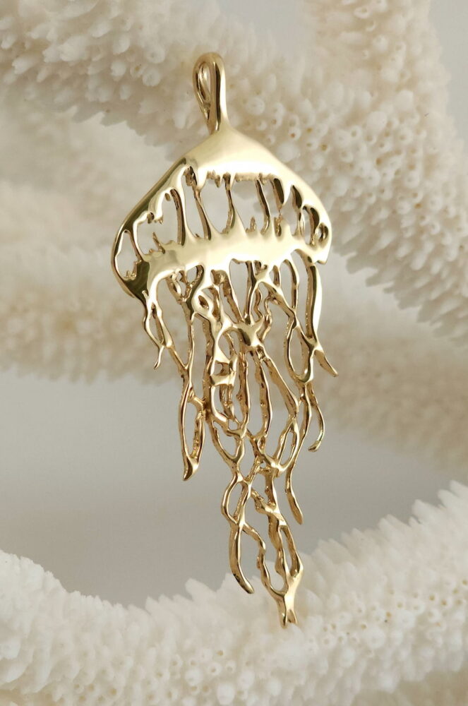 Our Peaceful Jellyfish Pendant, one of our best sellers, is beloved by our customers. When designing this statement piece, we were inspired by the majestic nature of jellyfish. These mysterious creatures captivate us with their stunning beauty and graceful, yet sometimes dangerous, presence in the ocean.