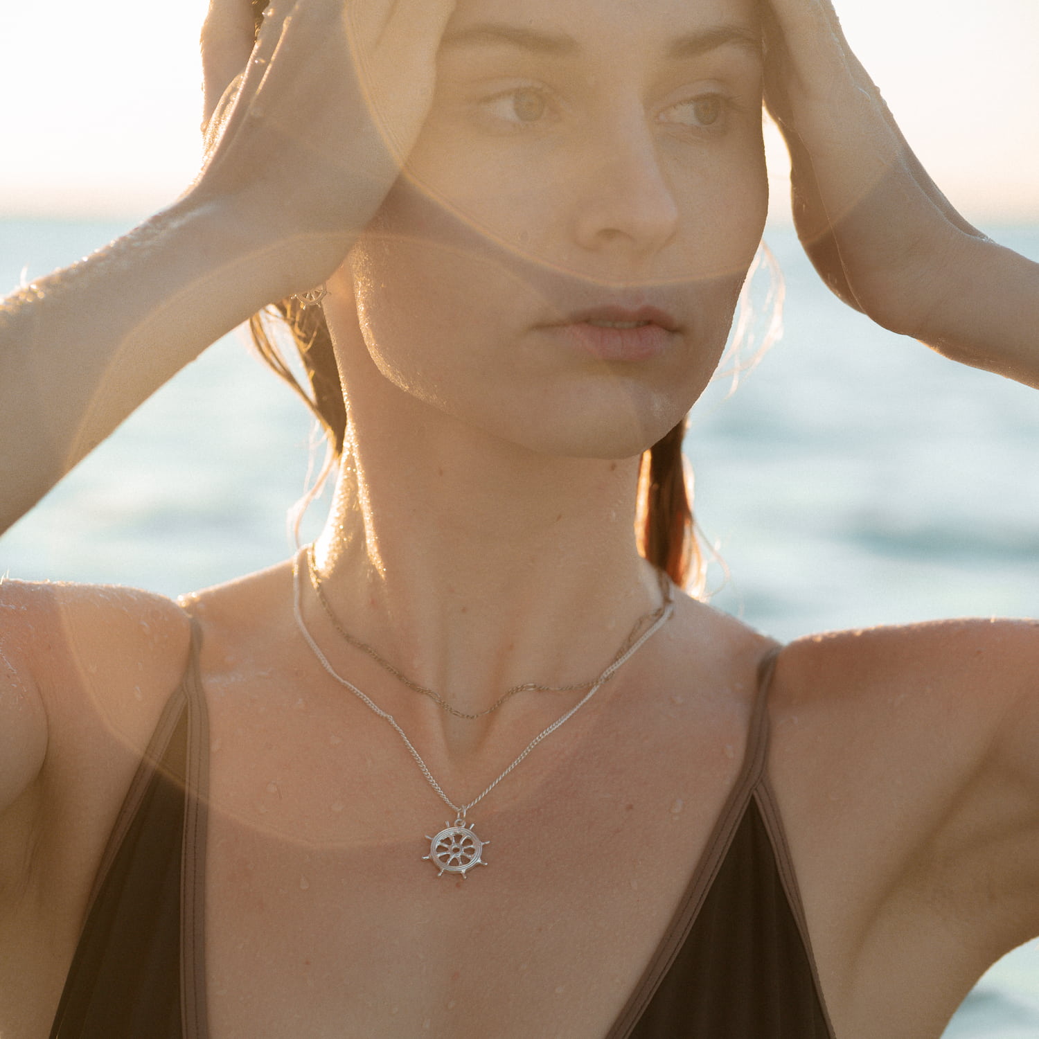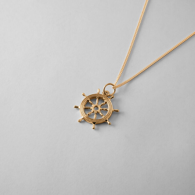 Our Ship Wheel Pendant, a striking emblem of maritime legacy and seafaring spirit. Each detail of this pendant, meticulously crafted, pays homage to the timeless symbol of navigation and exploration—the ship’s wheel.