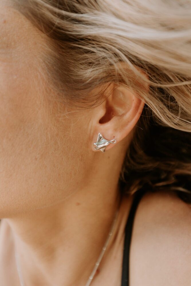 Add a splash of ocean magic to your look with our Manta Ray Stud Earrings! These little beauties are inspired by the graceful manta rays that glide effortlessly through the sea. With a high polish finish, they shine beautifully and catch the light just right.