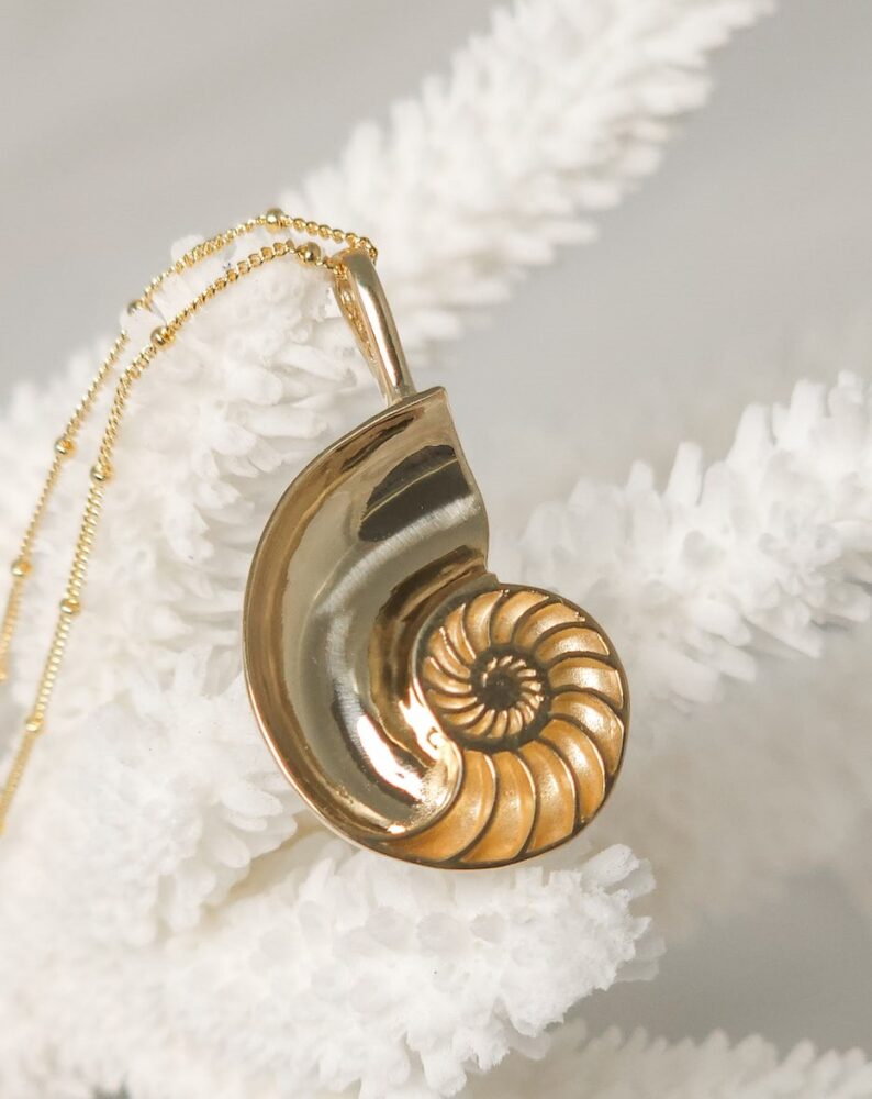 To complete your look, check out our matching Nautilus Shell Earrings or Nautilus Studs. They’re designed to perfectly complement the pendant, creating a beautiful set that brings a touch of coastal elegance to any occasion.
