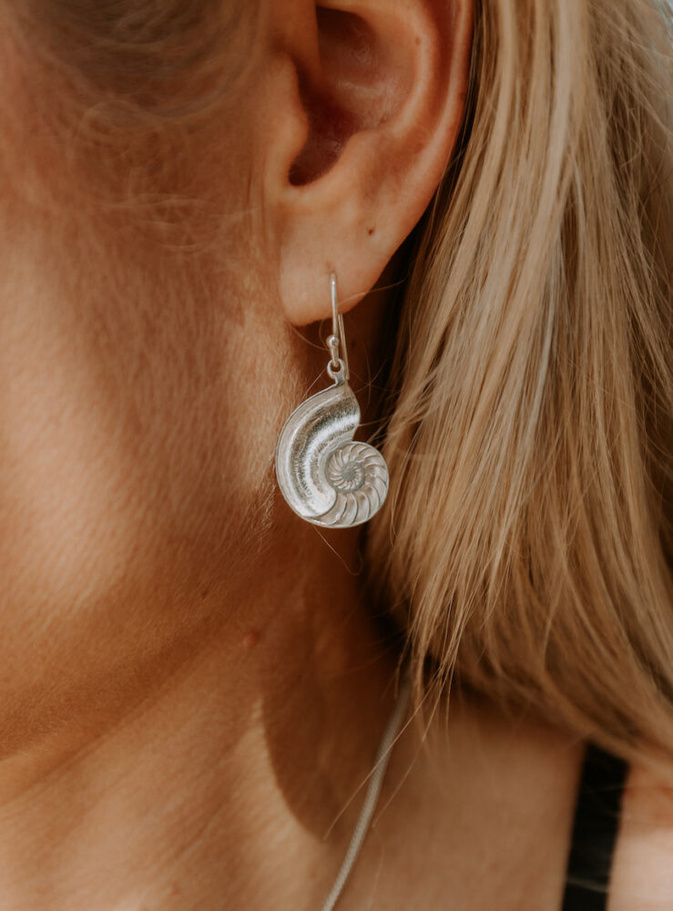 Inspired by the ocean’s wonders, our Nautilus Earrings bring the beauty of marine life to your jewelry collection. Available in solid sterling silver or solid gold, each pair is a handcrafted masterpiece, revealing the intricate patterns of the nautilus shell’s interior.