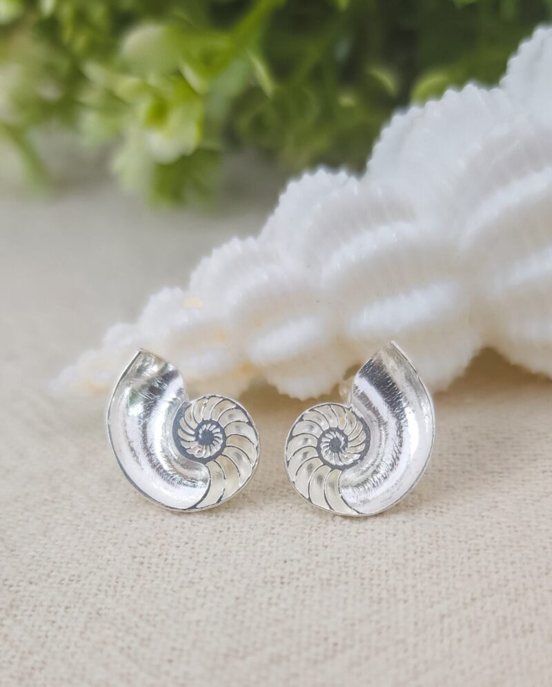 Capture the essence of the ocean with our Nautilus Stud Earrings. Handcrafted in solid sterling silver or solid gold, these elegant studs showcase the mesmerizing details of the nautilus shell, bringing a slice of nature’s beauty to your look.