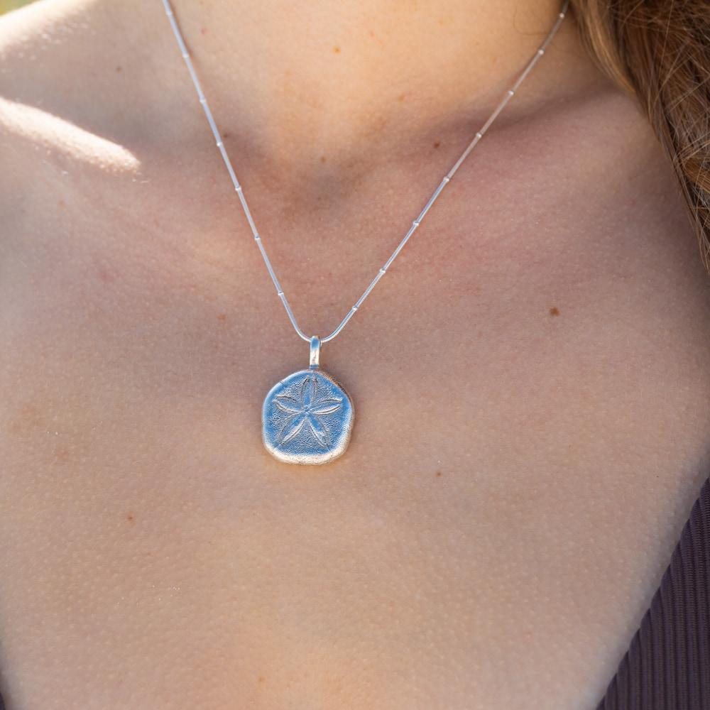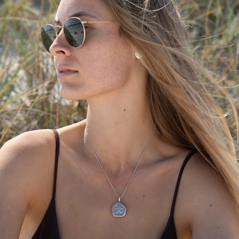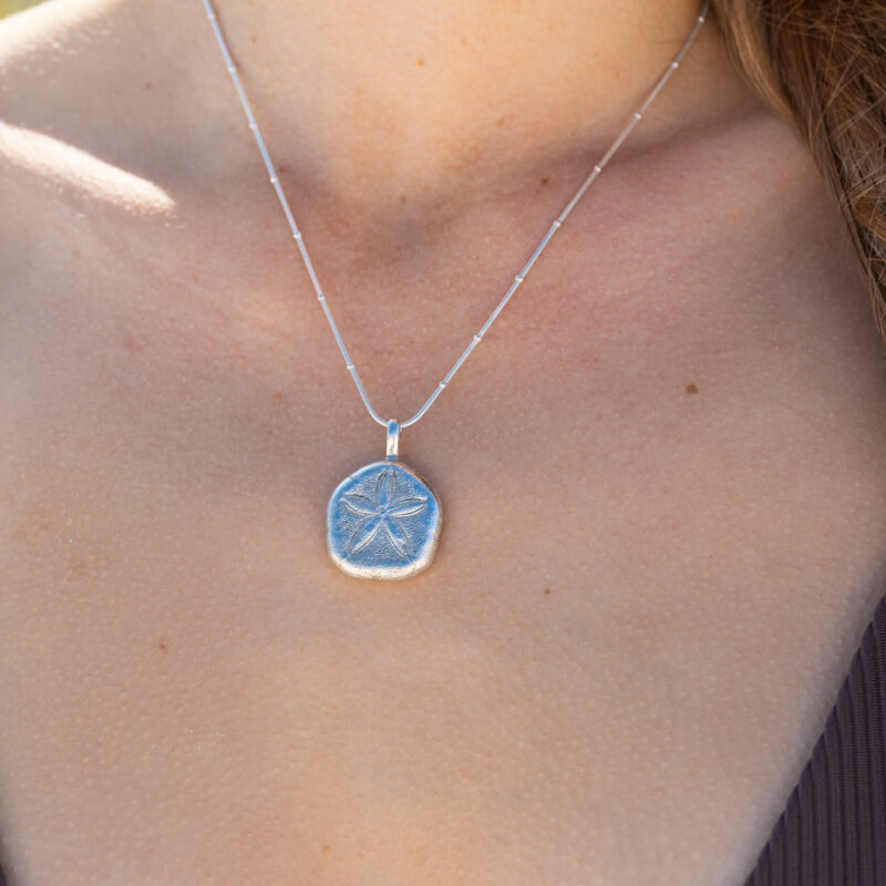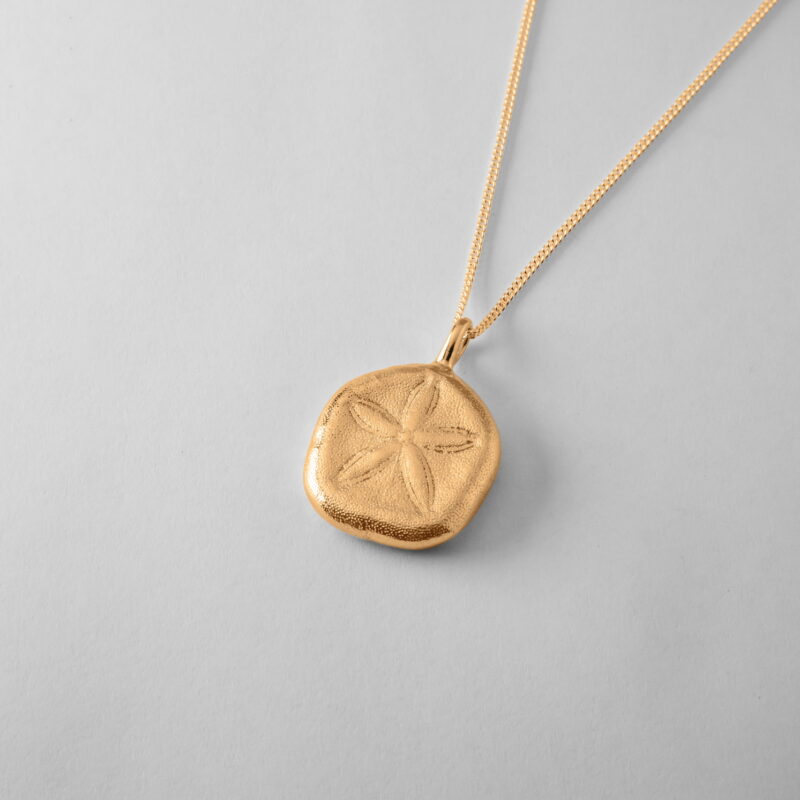 Inspired by the delicate skeletons of sand dollars, said in folklore to be the lost currency of mermaids, this pendant captures the ocean’s charm. Unlike its fragile natural counterpart, this pendant will never crumble or tarnish, ensuring it remains a timeless keepsake.