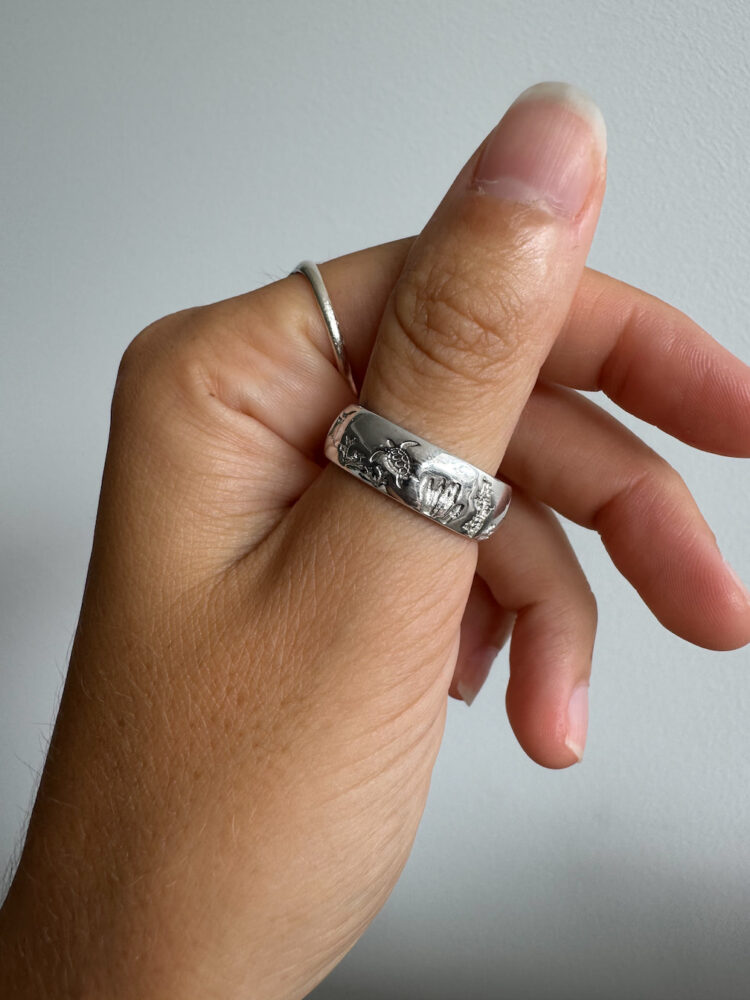 Delicate yet full of depth, our Reef ring brings the spirit of the sea to your fingertips. Meticulously crafted in solid sterling silver or solid gold, this ring features a miniature coral reef scene alive with detail.