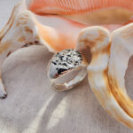 Signifying the relationship between wind, rain, and water, the rippling effect on this ring represents the decisions we make and their onward journey and implications. Our life ripples expand, bump into, and sweep through others’ ripples, just like raindrops on a still glass ocean.