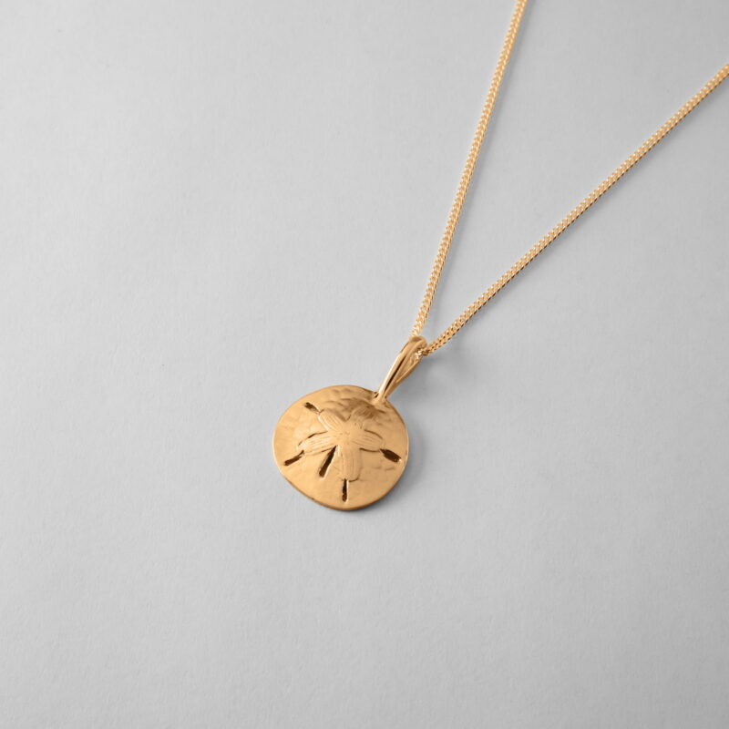 Though fragile in nature like their oceanic counterparts, this pendant promises enduring elegance, immune to decay or tarnish—a timeless memento of the sea. The Dainty Sand Dollar Pendant, the smaller of its kin, whispers a hint of mermaid shimmer, guiding you gracefully through the changing seasons.