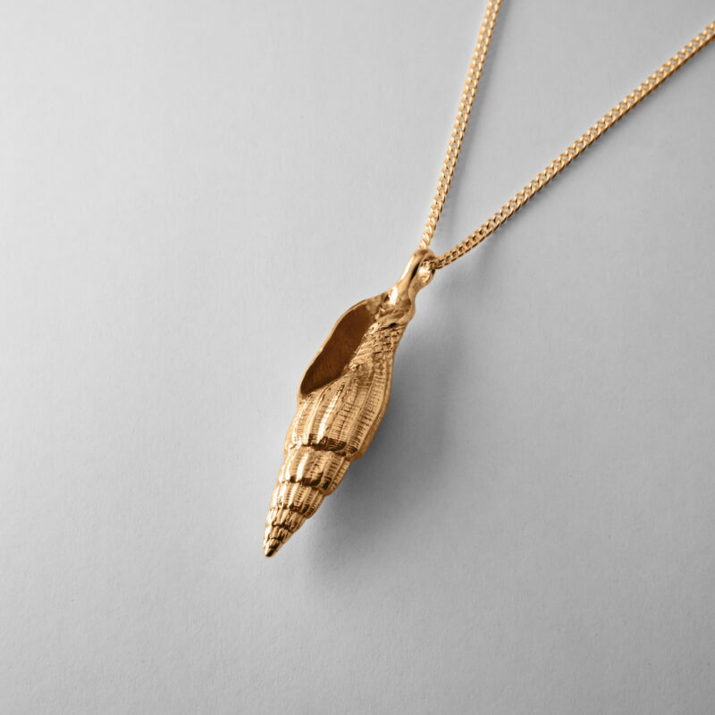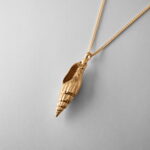 Recreating the spiralling bands of the vexillum shell, native to the warm shores of the southern Pacific Ocean, this Tulip Shell Pendant is evocative of a barefoot stroll along the warm sands. It holds its own as a solitary piece but can also be paired with other ocean-inspired designs to create the perfect beachcomber’s necklace. Always carry the sea with you!