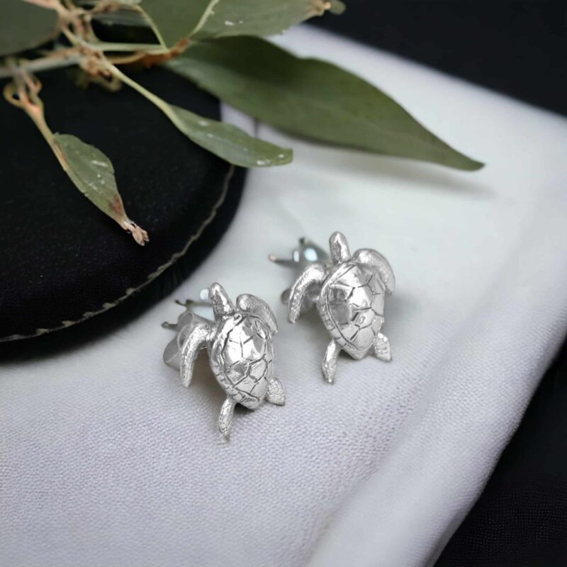 These adorable Sea Turtle Stud earrings feature the green sea turtle. Sea turtles swimming through the ocean is the epitome of grace and beauty. The fine details of Sally’s carving are apparent in these sterling silver lost wax castings. Every feature has been carefully hand-carved and finely detailed, making it a perfect gift for any ocean lover.