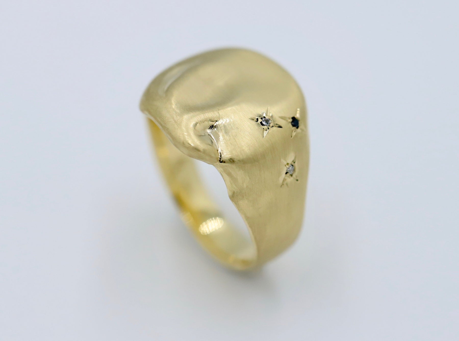 A meaningful take on a timeless classic, the In the Stars signet ring is crafted with an organic, softly contoured oval top and a low-profile rise of 3.4mm off the finger — ideal for everyday wear.