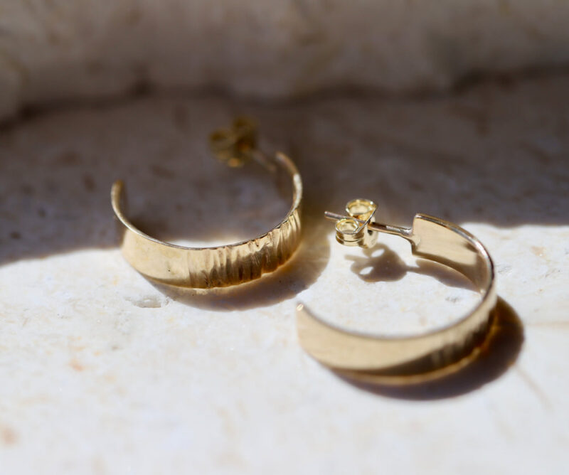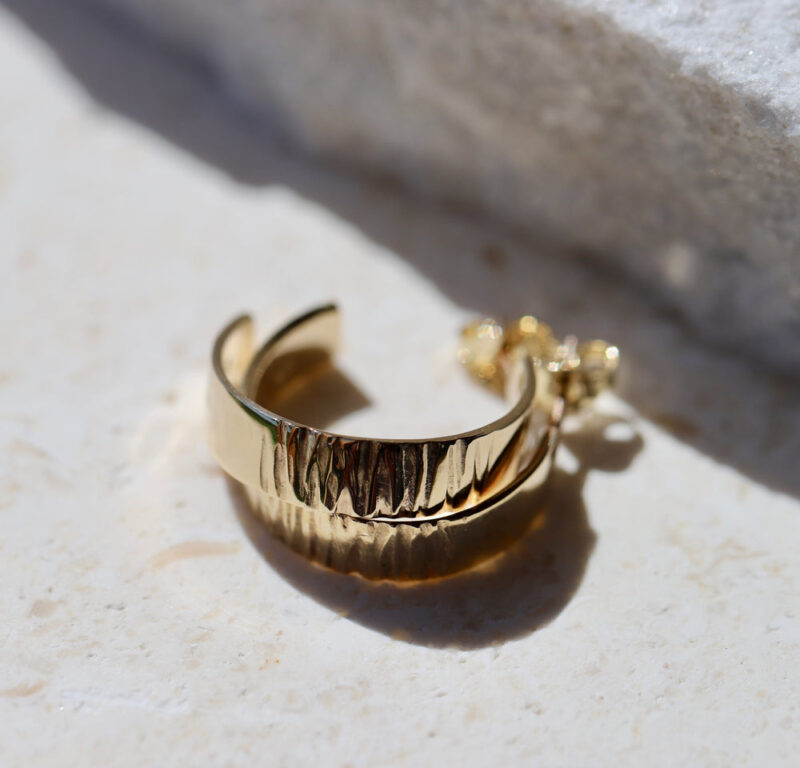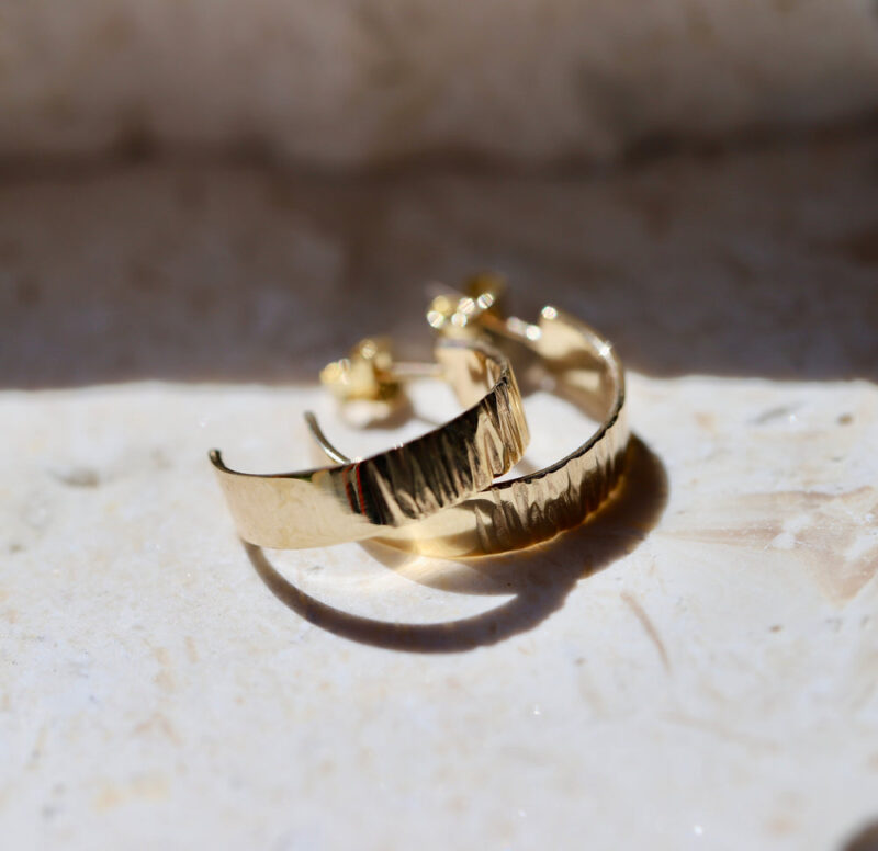 Subtle yet striking, the Ripples hoop earrings are your perfect everyday companions. Measuring approximately 19mm in diameter and 5mm wide, these open-back hoops feature a softly filed ripple detail through the centre—an ode to the ocean’s surface, ever shifting and serene.