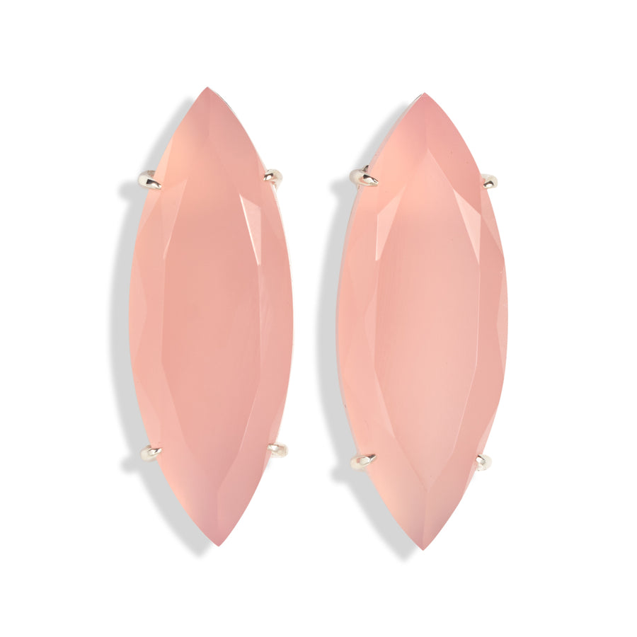 This handmade pair of faceted peach chalcedony and sterling silver earrings, unites the warm, inviting hues of the chalcedony with the enduring beauty of sterling silver to create a fusion of elegance and artisan craftsmanship.