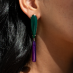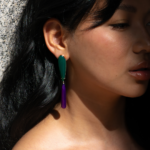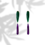 An elongated pair of daring drop earrings. Featuring 9ct Rose Gold settings along with Sterling Silver, these bold forest green and purple Chalcedony drops are an essential statement piece to add to your collection.