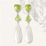 “I hope you had the time of your life” Even when things are unpredictable one thing you can rely on is these earrings always being just right. Two striking green peridots set in handcrafted sterling silver float one above the other with the main attraction showcased below in the pure form of a clear quartz drop. A bold statement earring of semi-precious stones designed to dazzle brilliantly wherever your path takes you.