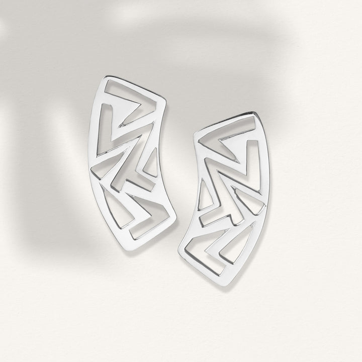 From the Daintree to the Atherton Tablelands, forests and rainforests are incredibly important and fascinating places. Their canopies are living roofs dabbled with natural light. This is the inspiration for these hand-drawn statement earrings. Their geometric design is inspired by the view you might see when you look up from the rainforest floor. Hand crafted in Sterling Silver, these earrings are perfect to wear anywhere.