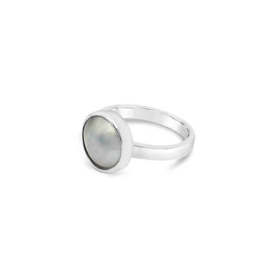 Sterling silver ring featuring Abrolhos Island Mabe Pearl. Designed and made at Latitude Gallery Jewellers.