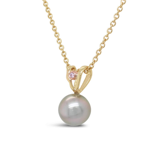 Our beloved Island Bound Pendant, now reimagined with a captivating touch of elegance. This stunning piece features one of our home-grown Abrolhos Island Black Pearls, beautifully complemented by an exquisite Pink Diamond from the renowned Argyle Mine.