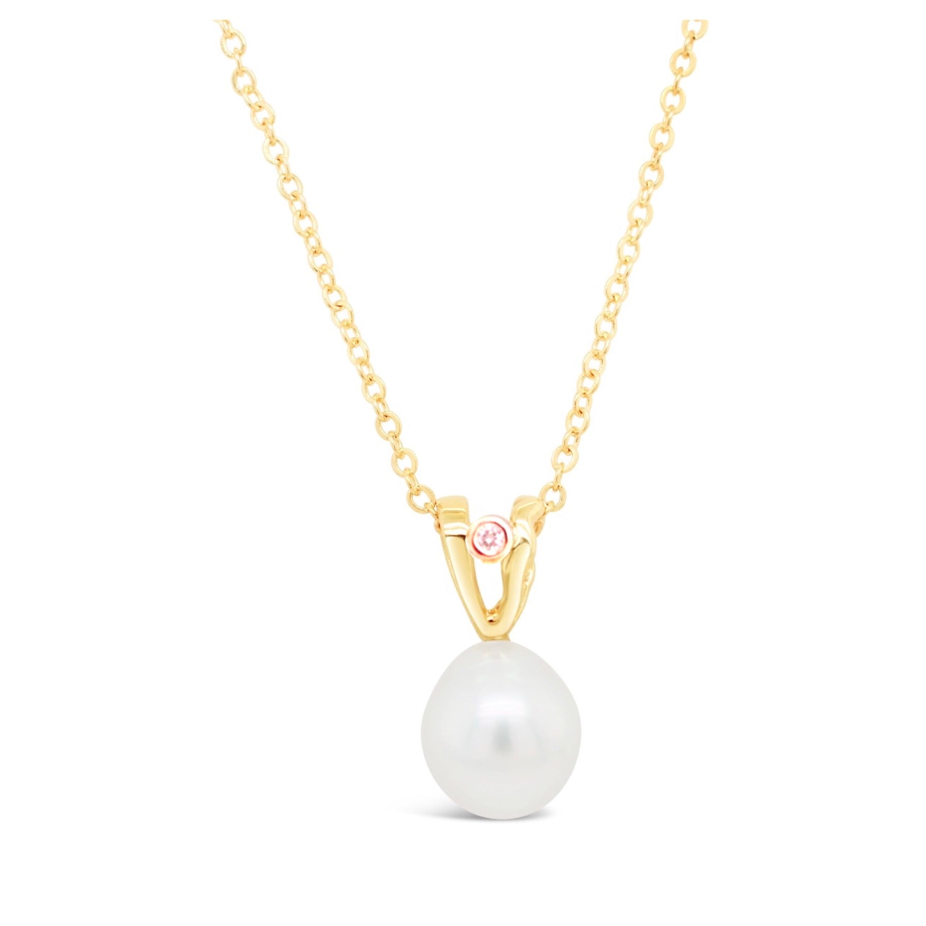 Our beloved Island Bound Pendant, now reimagined with a captivating touch of elegance. This stunning piece features an Australian South Sea Pearls, beautifully complemented by an exquisite Pink Diamond from the renowned Argyle Mine.