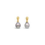 Timeless Abrolhos Island Pearls complement 18 carat yellow gold articulated drop stud earrings.
