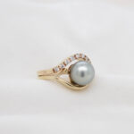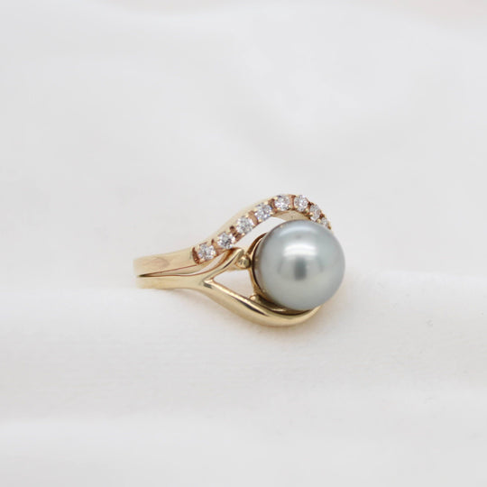 The Bardot ring features an A-Grade, 9.5-10mm Abrolhos Island Black Pearl and is perfectly paired with a Diamond eternity band featuring ten White Diamonds.