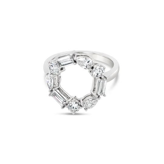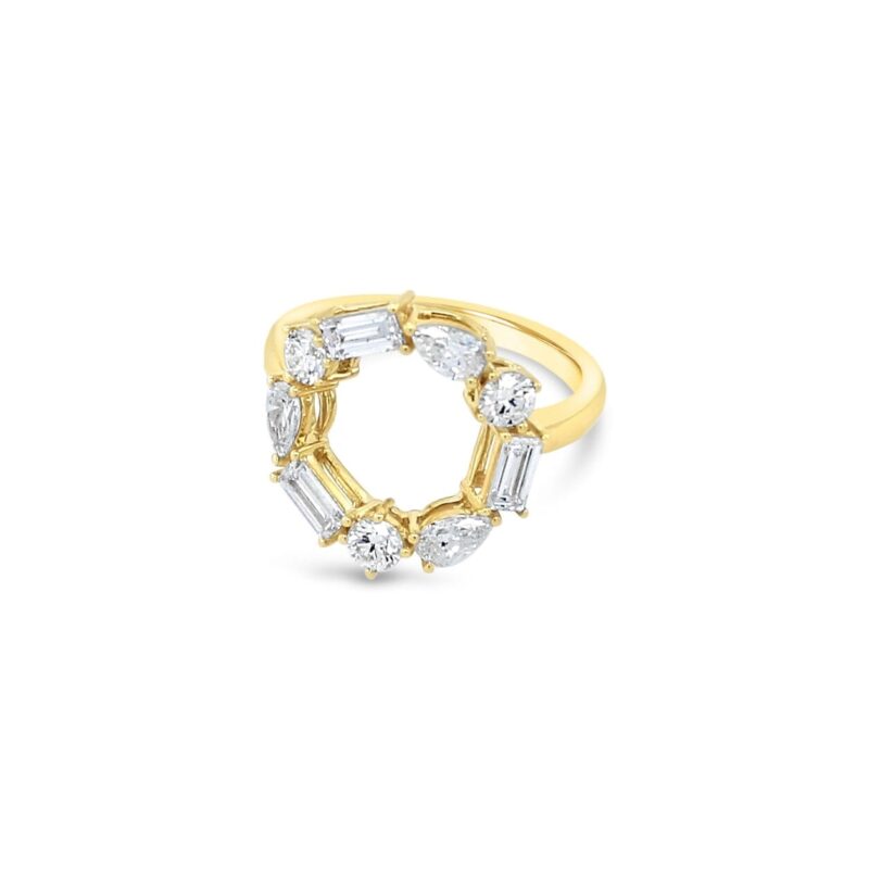 Our new 9ct Gold Ring from the Diamond Infinity Collection by Pia in a larger setting – radiating even more light and sparkle . This luxurious ring, 18mm in diameter, also features three of our favourite cut diamonds united together – Round, Pear Cut and Baguette Diamonds with an average total Diamond Weight of 1.60 – 1.77 ct Lab grown Diamonds, Clarity VS Colour F/G.