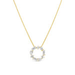 9ct White Gold and Yellow Gold Pendant from the Diamond Infinity Collection by Pia. This unique design features three of our favourite cut diamonds – Round, Pear and Baguette all united together to create this luxurious pendant. Created for you to enjoy wearing everyday. Available in White or Yellow Gold with a Total Diamond Weight of 1.20ct Lab grown Diamonds, Clarity VS Colour F/G on a 45cm 9ct White or Yellow Gold Wheat Chain.